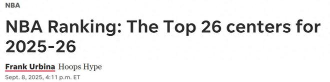 火箭队申京高居第4名!继控卫、分卫、小前与大前锋之后,美媒《hoopshype》又适时公布了新赛季中锋TOP26名单,其中湖人队新援艾顿压线入选。第五名:恩比德24-25赛季:23.8分8.2篮板4